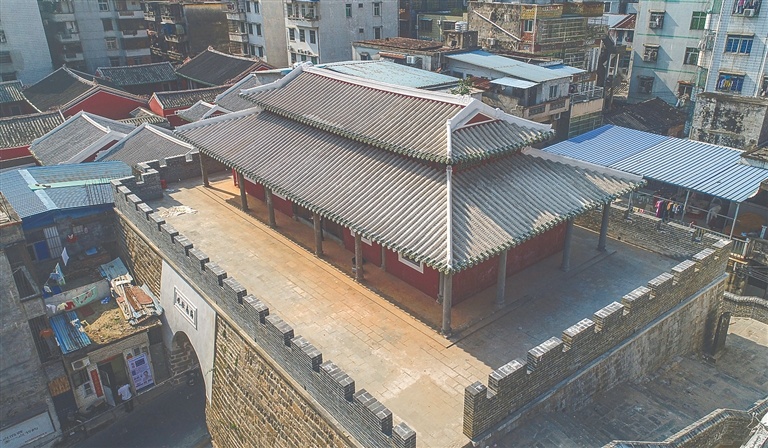 重修后的海口府城鼓楼,仍为砖木混合结构建筑。海南日报记者 袁琛 摄