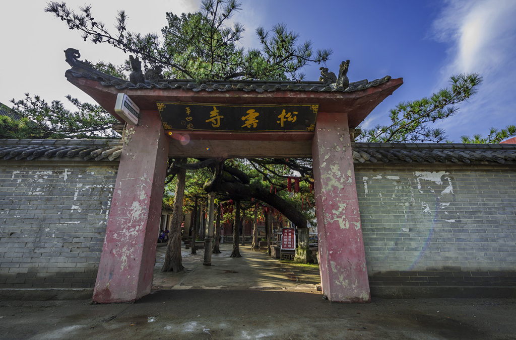 走进松云寺,映入眼帘的便是朱红色的木质大门,部分门漆已脱落,略显破旧。虽没有宏伟壮观的外表,但和那些富丽堂皇的寺庙相比,给人一种沉稳质朴的岁月感。