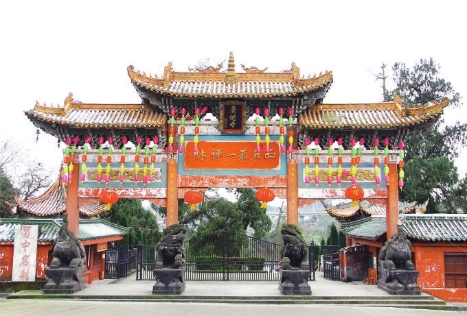 出家之人,修行悟道,总要选择一处远离尘嚣、风景秀丽的地方安放自己的心灵。以今天四川遂宁的城市格局来看,卧龙山广德寺位于遂宁市船山区与遂宁市高新区之间,实在算不得一个偏僻之地。但正如古诗所云那般:“翠柏森森掩卧龙,梵宫宝刹夺天工。”这里与现代城市有着完全不同的意境——群山之间,蓊郁的翠柏、古朴的亭台楼榭,行走其间,不由生出一种仿如隔世之感。