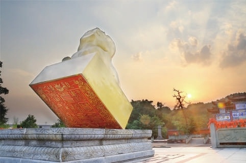 如果从寺院南门进入,首先便可见广场上一座硕大的宝印,号称“一印天下”。它虽然不是真的,但广德寺确实珍藏有宝印,是皇帝御赐的镇山法印。这枚宝印叫“御敕广利禅寺观音珠宝印”,而广场上的则是原印放大26900倍后的样子。御赐镇山法印在全国屈指可数,而广德寺却独得两枚,一枚就是这枚宋真宗御赐的观音珠宝印。另一枚则是明武宗敕赐的“四国文玉印”。