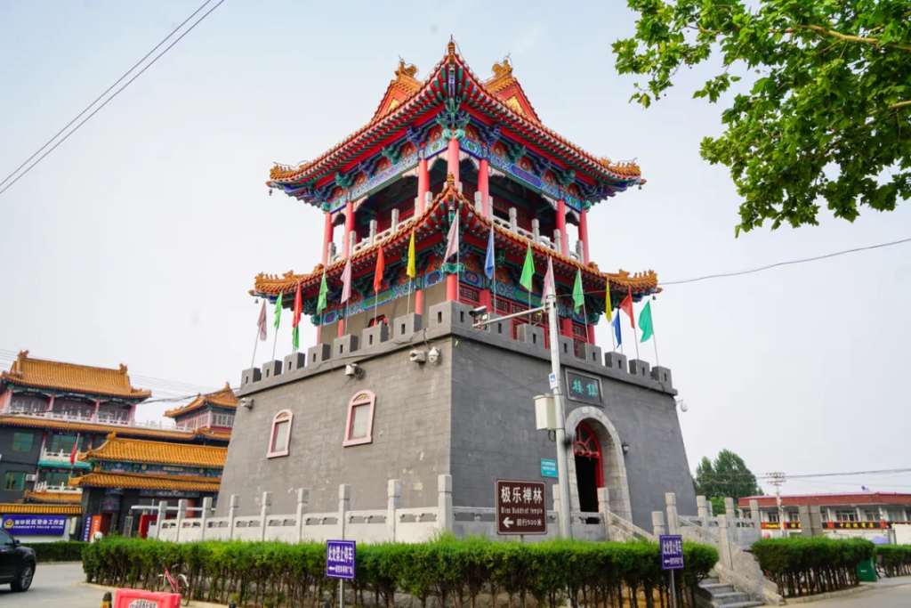 在张坊古城内还有座古戏台,建于唐朝,这种结构的戏楼全国只有两座,它的顶部全部是榫卯连接,不用钉子,戏台底部不是实心的,而是布满大缸,离大缸30公分的上面再放上木板,这样做的目的是起到扩音器的效果,古代劳动人民的聪明才智让人叹服。