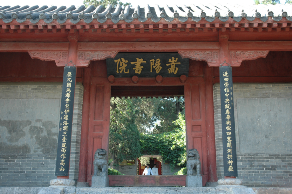 嵩阳书院位于河南省登封市嵩山太室山峻极峰下,坐北朝南,东、北、西三面峰峦环拱,溪水围合,南面开阔平缓距双溪河仅165米。书院前身为建于北魏太和八年(484年)的嵩阳寺,五代后唐时改为书院。南宋王应麟《玉海》把嵩阳书院与江西白鹿洞书院、湖南岳麓书院、河南睢阳书院(又称“应天府书院”)并称为四大书院。