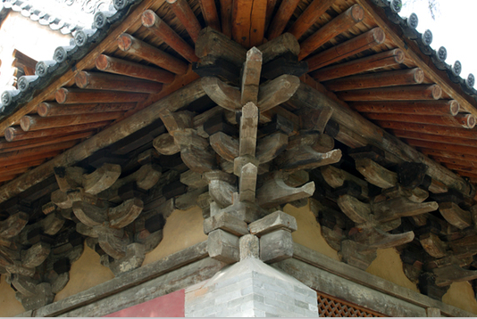 会善寺大雄宝殿是嵩山地区现存唯一的元代木结构建筑,高10.6米,长19.92米,宽13.28米,面积264.54平方米。面阔五间,进深三间,单檐九脊殿。殿檐下斗拱硕大,外跳五铺作重拱双下昂,各间均施补间铺作一朵。其典型做法,如斗拱、角梁、乳栿、丁栿、丁华抹颏拱等,虽经明、清两代多次重修,仍不失其价值。