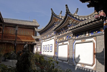 现存喜洲的白族民居古建筑,仅明、清、民国时期的民居就有一百多座。院落布局有一进三院、三坊一照壁、四合五天井、五福寿、六合同春等。其中,“六合同春”的建筑有10座,严家大院正是这种式样的典型代表。