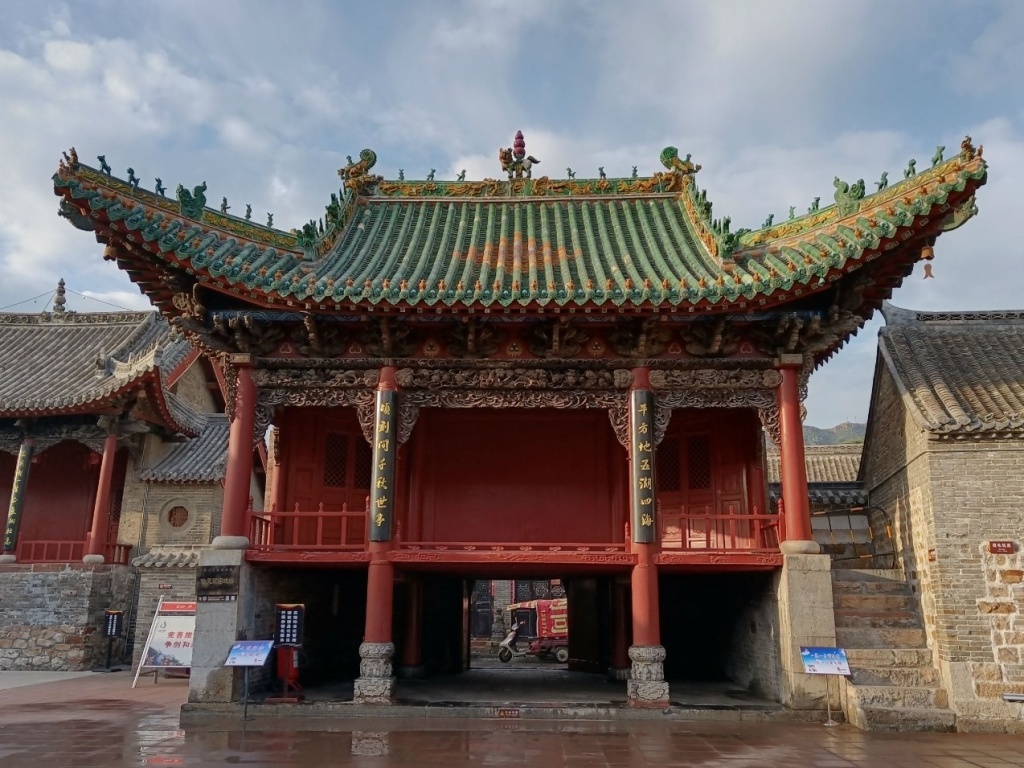 与伯灵翁庙毗邻的还有一座庙宇,即位于右侧的关帝庙。关帝庙现存戏楼、木牌楼和钟鼓楼。“逢年过节,两座戏楼可以唱‘对台戏’,热闹得很!”老街的居民笑着说。