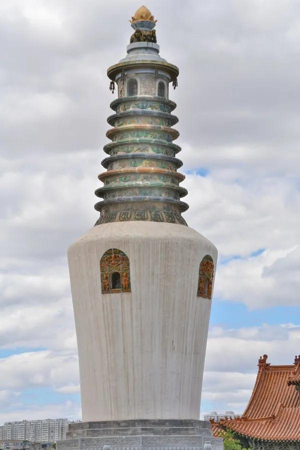 法华塔因通体是白色,也称白塔。覆钵式指塔身呈向下的半球体,状如倒覆之钵。此种塔型,印度称为窣堵波式,是印度佛教的原创塔式,早在东汉末年便沿丝绸之路传入中国,但在后来佛教中国化的过程中,与中国的传统建筑样式相融合,南北朝后,逐渐被密檐式和楼阁式塔所取代。