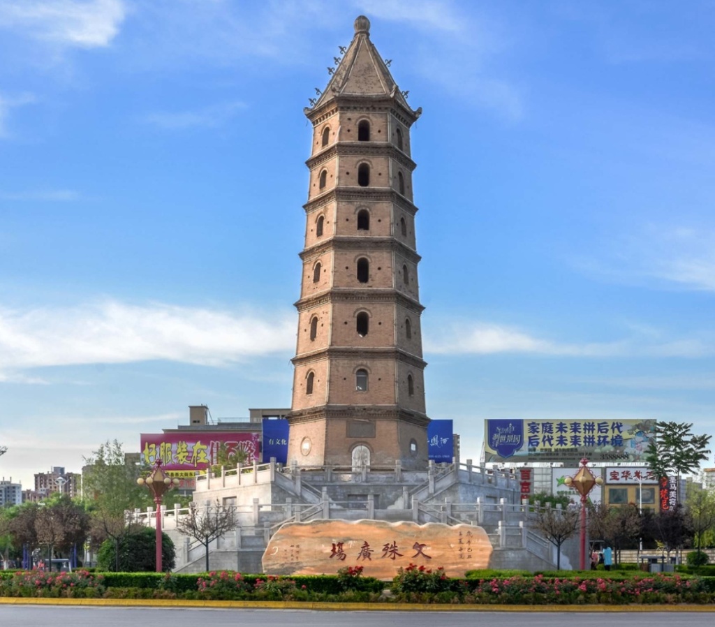大荔文殊新塔位于陕西省渭南市大荔县北大街北端与环城北路相交的十字路口处,2008年被陕西省人民政府公布为第五批省级文物保护单位。文殊新塔,原名文殊塔,因文殊阁而得名。