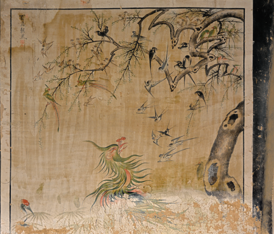 其中的《擒蚩尤》画的是黄帝大战蚩尤的故事;《西陵制衣》画的是黄帝元妃西陵氏缧祖教人们制衣的故事;《黄帝赐衣》画的是黄帝给百姓赐送衣服的故事;《天雨粟》画的是上天被仓颉造字所感动而降“谷子雨”的故事;《石楼造字》画的是仓颉造字的情景。其中《百鸟朝凤》《西陵制衣》《黄帝赐衣》《隶首造律品》《权衡度量》等壁画,表达了炎黄时期的先人们设姓氏、造文字、作甲子、立历法、创算数、为音律,揖舟驯马、养蚕制衣等开创中华文明、缔造神州的伟绩。由于保护原因,暂不对外开放参观。