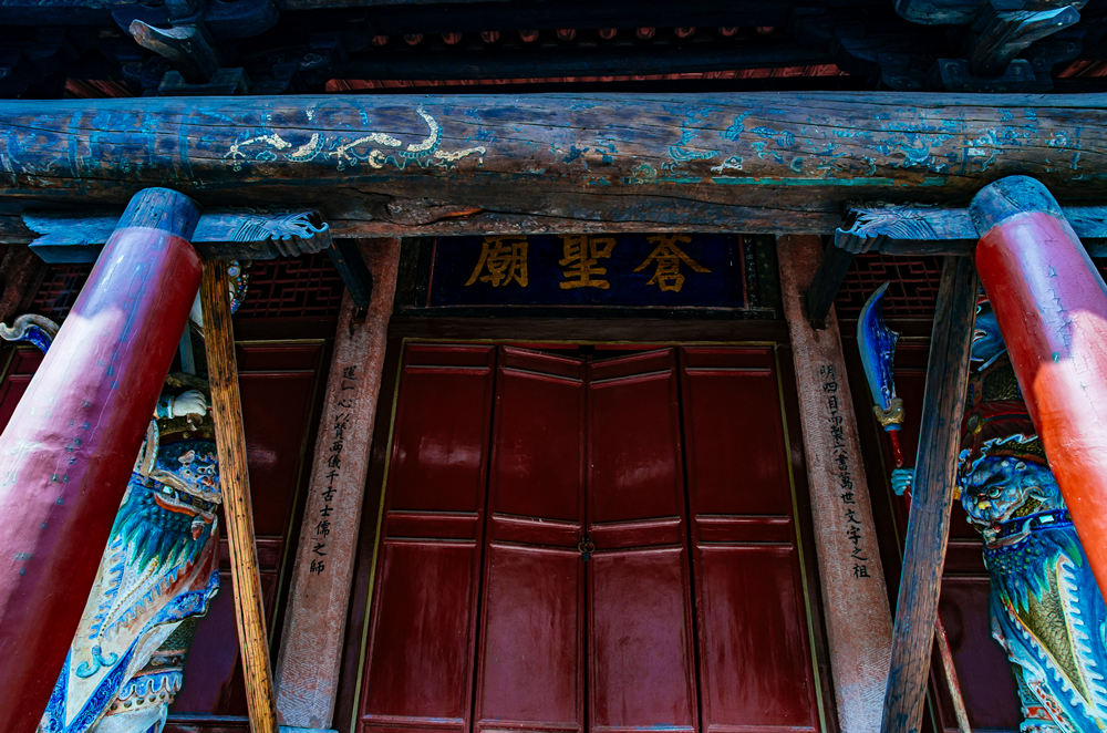 陕西省白水县仓颉庙寝殿,又称后殿,供奉的是仓颉的塑像,殿内有十分珍贵的壁画,壁画大都与黄帝和仓颉有关,始建年代不详,每幅壁画都有一个优美的传说故事。