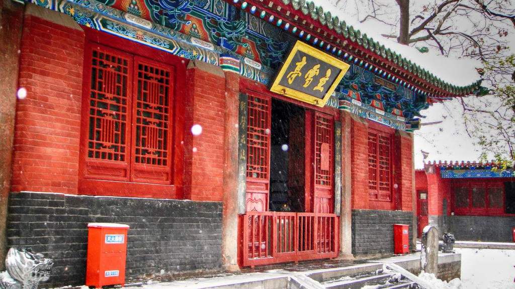 在方丈室后,有明代所建纪念二祖慧可的立雪亭。殿内神龛中供奉的是铜质达摩坐像,两侧分别是二祖慧可、三祖僧璨、四祖道信、五祖弘忍。殿内悬挂“雪印心珠”四字匾额乃乾隆皇帝御题,匾额正中有“乾隆御笔之宝”的印鉴。