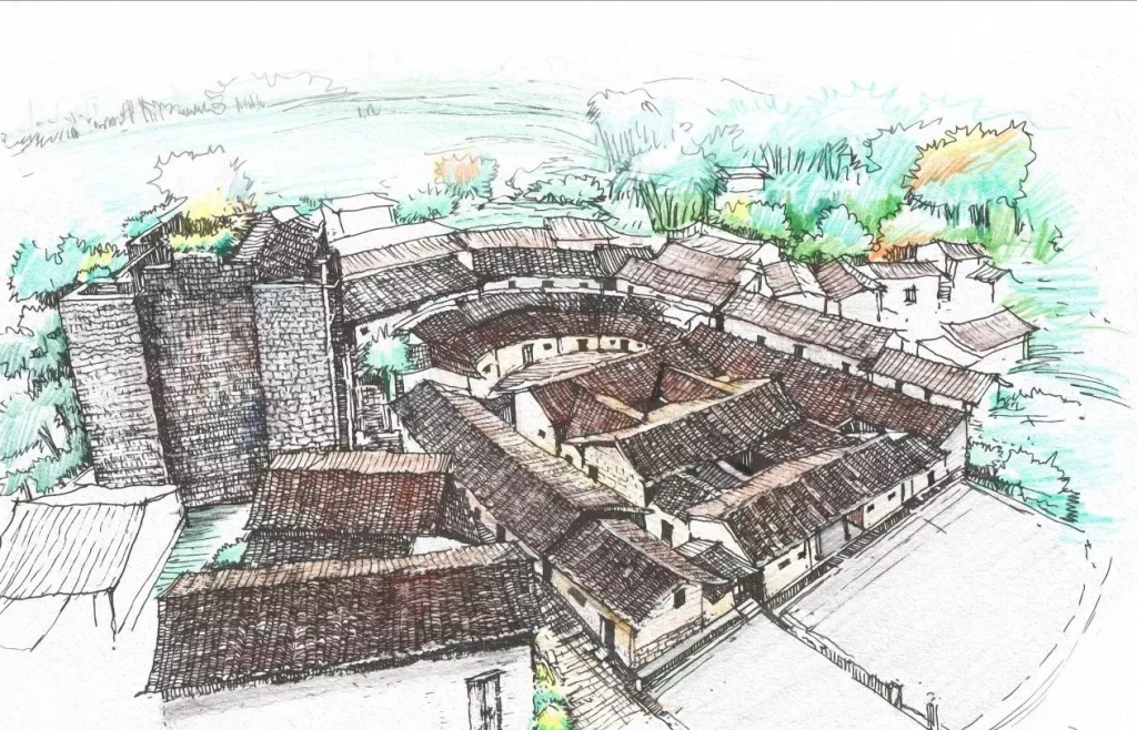 先说客家围屋角楼,这在平陵、龙江等以客家文化主导的地区常见,但存量不多,且大多已破坏,较有代表性的有平陵山下四角楼、龙江罗洞两角楼和四角楼,为研究当地清代客家传统居住和建筑文化提供了较有价值的实物资料。另外一种形式,前有角楼后有望楼,比如永汉鹤湖围,建筑立面前方是两个“镬耳”角楼,中轴线上、祠堂后面有望楼,又如,龙华蓝滘悦昌围,前方两个角楼,马蹄形围屋中轴线后端,也设有一个望楼。龙门的客家围屋要跟惠阳秋长地区的客家围屋比起来要逊色,不过值得一提的是,平陵白花塘的双马蹄形客家围屋,比肩而立,这在惠州是独一无二,在广东也罕见。
