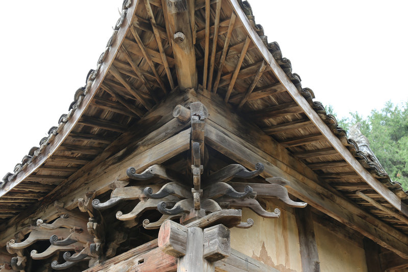 桂香殿是三间10多米宽、进深11檩的木结构建筑,单檐,歇山顶小青瓦屋面,是抬梁式与抬担式混合结构。