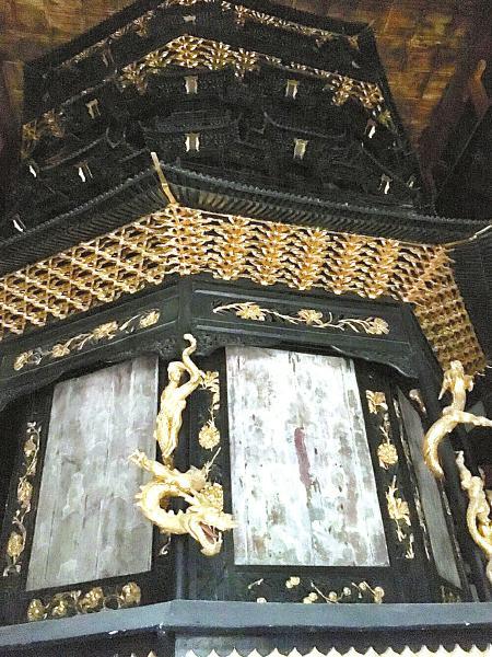 省文物局文保处处长何振华介绍,四川仅存的南宋木构建筑为江油窦圌山云岩寺飞天藏殿,大殿中央的飞天藏,是我国现存唯一的宋代道教转轮经藏。它精雕细刻了4重楼阁,与宋代《营造法式》中转轮经藏图中的天宫楼阁极为相似。这座建于宋淳熙八年(公元1181年)的建筑躲过战乱兵火而幸存。它的奇特之处在于整个藏身用竹木钉铰接,并由珍贵香柏木穿斗而成。藏身中包裹有大圆柱,外连木枋形成巨型木塔。“5·12”汶川特大地震中,飞天藏殿严重损毁:大殿基础局部下沉、墙体坍塌、原本可以转动的飞天藏倾向一侧。经过多年修复,800多岁的飞天藏终于成功矫正“脊柱”。重约5吨、高10.5米的飞天藏,在3人的推动下便可转动,重现昔日风采。