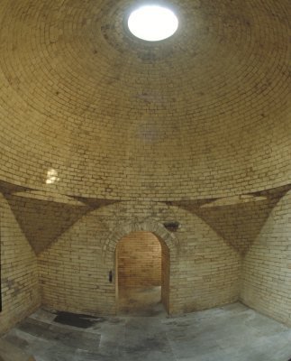 美国作家菲利普·希提在《阿拉伯通史》中描述了公元十世纪巴格达澡堂的特点:“环绕着一个居中的大厅,大厅上面,罩着一个圆屋顶,屋顶周围镶着许多圆形的小玻璃窗,让光线透进来”。而浴德堂的造型,与书中的描述是高度相似。浴室平面为正方形,边长为4米,方砖墁地。地面四边砖砌发券形成3.1米高的拱形墙面,墙面贴有瓷砖。在四面墙之间砌筑以对角线为直径的穹顶,穹顶高1.7米,仿佛一个完整的穹顶在四边被发券切割而成。整座建筑没有采用一根木料,也没有使用一根梁,因而又被称为“无梁殿”。浴室的重量完全由四个券承担,从而使内部空间获得了极大的自由。穹顶上方为突出屋面的圆形玻璃屋顶,屋顶高约1米。