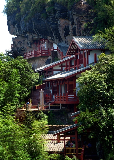 武夷山著名的九十九岩之一,从佛应岩沿小径行二里到达岩下。岩体方正,游客俨如置身于佛国之中,膜拜于妙相庄严、端庄肃穆的众佛之下。岩下有佛国寺,寺额尚存,建筑完好,现为民居及制茶作坊,春夏两季茶叶飘香,令人心旷神怡。岩顶、岩麓辟有茶园,四周树木葱茏,绿遍村庄。